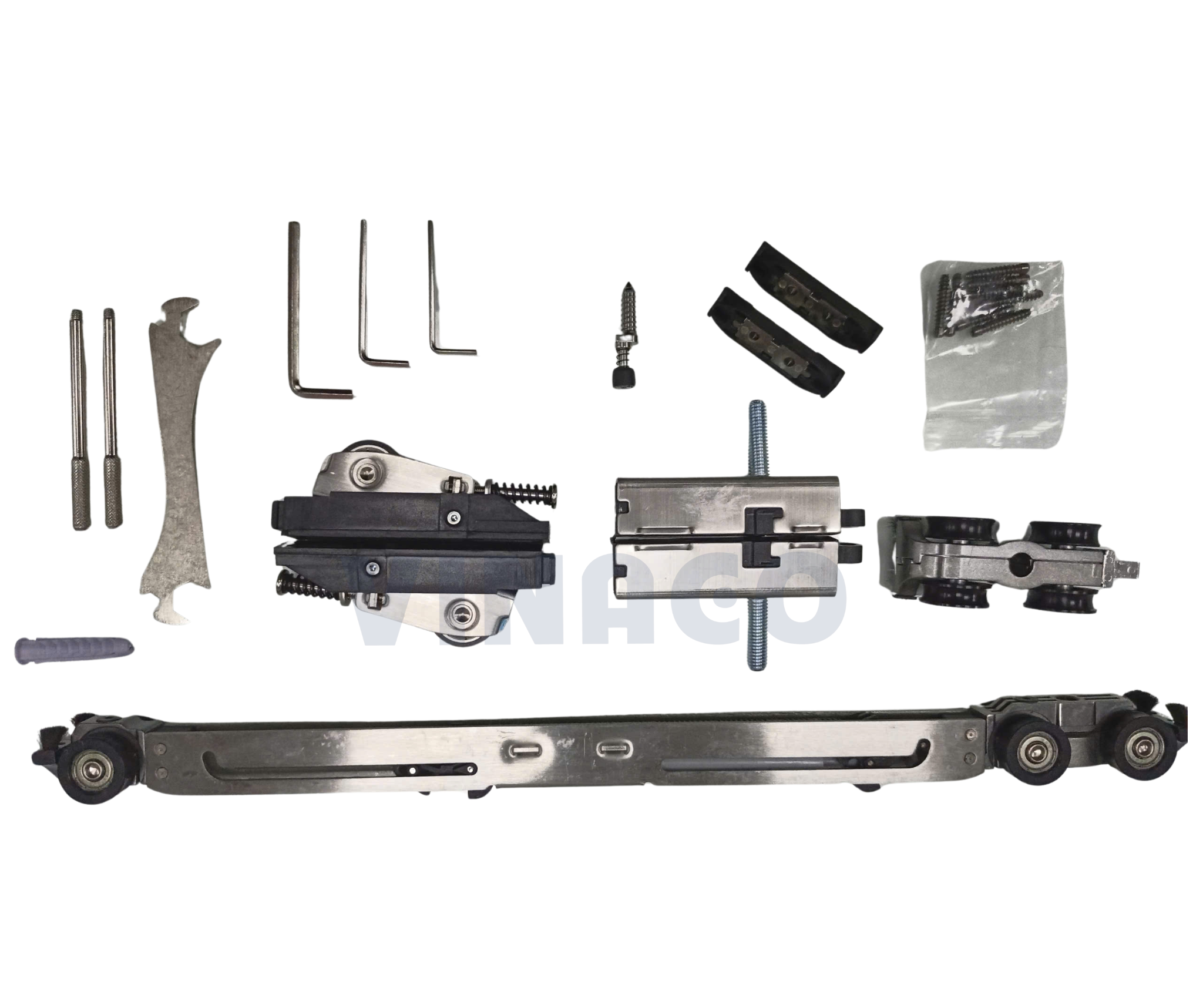 - 1 ti treo cánh: liên kết chắc chắn giữa cánh cửa và ray trượt
