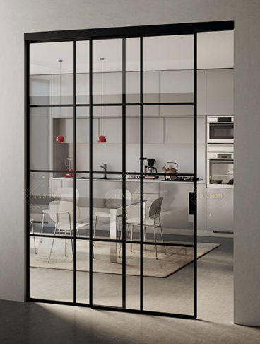 Thiết kế này không chỉ giải quyết bài toán phân chia khu vực mà còn đóng vai trò như một bức vách kính nghệ thuật, giúp duy trì sự kết nối thị giác xuyên suốt giữa các phòng chức năng. So với các hệ cửa trượt thông thường, SLCG loại bỏ hoàn toàn sự rời rạc, tạo nên một “bức tường kính” di động đầy tinh tế.